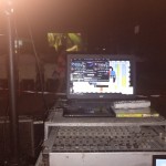 La imagen muestra un montaje técnico realizado por MovieMovil durante el concierto de final de curso de la academia de música Queros en el Auditorio ADOC de Elda. En el escenario, un grupo de músicos interpreta piezas mientras el logotipo de la academia, «Queros Escuela de Música», se proyecta en una pantalla grande. En primer plano, se observa un portátil y un proyector Epson, utilizados para gestionar la proyección. La iluminación del auditorio y la disposición del equipo técnico reflejan la profesionalidad y atención al detalle de MovieMovil en eventos culturales y educativos.
