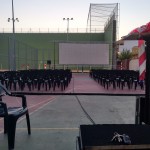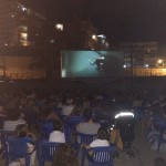 MovieMovil la empresa del cine al aire libre transforma un colegio en Aspe en un cine bajo las estrellas con una pantalla gigante.